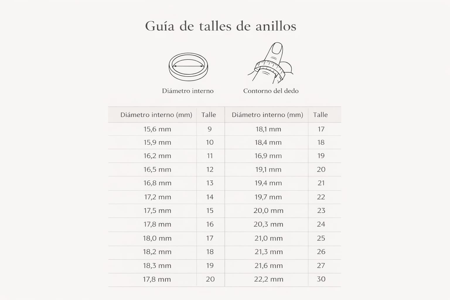 Para elegir la medida correcta de tu joya, te recomendamos prestar especial atención al talle, sobre todo en anillos. Una medida adecuada garantiza comodidad y un mejor uso en el día a día.
